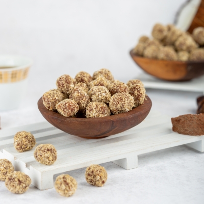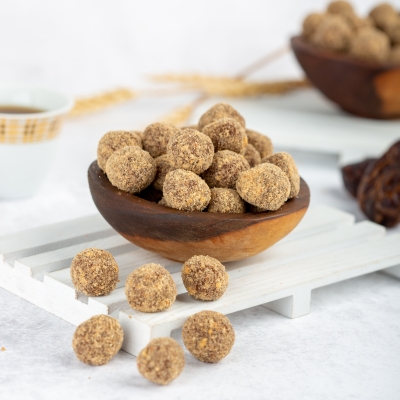 Date Balls from Dates and Wheat – a naturally sweet treat with no added sugar, made from soft dates and offered in three traditional flavors: cardamom, sesame, and coconut. Nutritious, simple, and full of energy and flavor – perfect for healthy snacking or authentic hospitality.