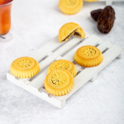 Each piece of maamoul consists of white flour dough mixed with butter and stuffed with date filling. High-quality natural dates are used, crushed, and mixed with some delicious spices to add a distinctive flavor.